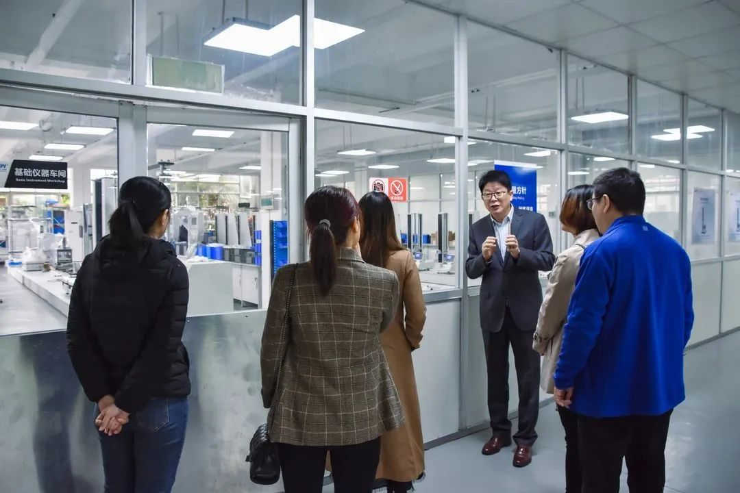 廣州標際總經理周學惠帶領仲主任、趙教授領導一行參觀了阻隔性能檢測儀器實驗室、基礎儀器生產車間、數字化實驗室、應用場景綜合展廳等場地。