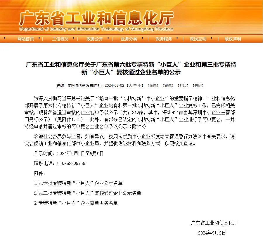 近日,根據廣東省工業和信息化廳發布的第三批專精特新“小巨人”復核通過企業名單,經過嚴格評審和復核程序,GBPI廣州標際順利通過第三批專精特新“小巨人”企業復核,進一步證明了廣州標際在行業內的領先地位和卓越實力!