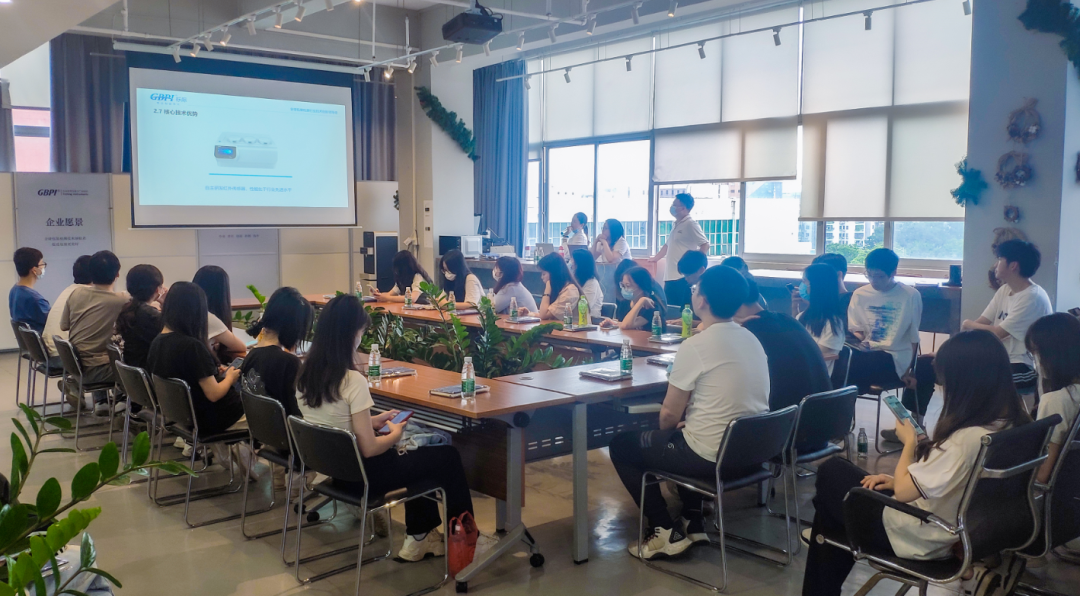 座談交流會環節,黃經理向廣州城市職業學院師生們詳細介紹了GBPI標際的發展歷程、產品技術優勢、企業文化、產品應用等情況,并重點介紹了標際在包裝檢測儀器領域的技術應用和豐碩成果。